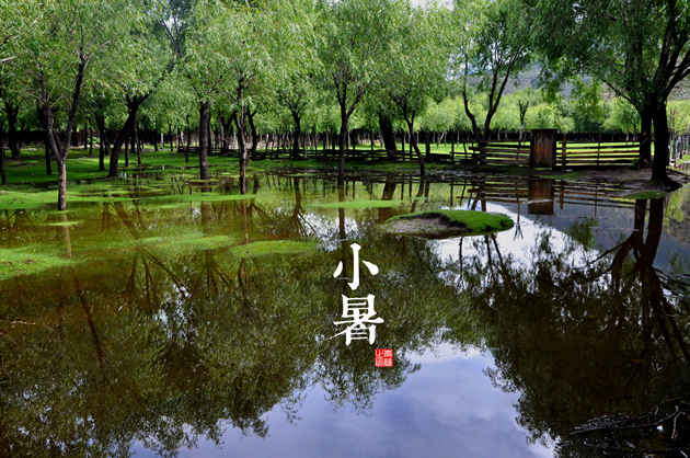 每年7月7日或8日视太阳到达黄经105°时为小暑(slight heat)。斗指辛。太阳黄经为105°。天气已经很热,但不到是热的时候,所以叫小暑。此时,已是初伏前后。