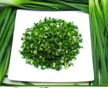 2.把韭菜洗净,切短,与蛋清、蛋黄、食盐混匀;