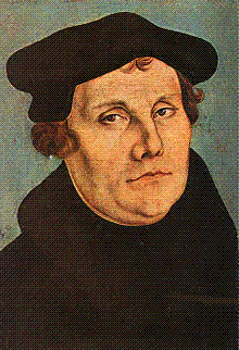 马丁·路德(Martin Luther,1483年11月10日—1546年2月18日, 在艾斯莱本逝世),本名Martin Luder,新教宗教改革的发起人。他本来是奥斯定会的教士、神学家和神学教授,本来他想避免教会的分裂来达到教会改革的目的。他的演说和写作天才以及他的令人尊重的为人使他的主张获得了很大的欢迎。他的改革终止了中世纪天主教教会在欧洲的独一地位。他翻译的路德圣经迄今为止仍是最重要的德语圣经翻译。