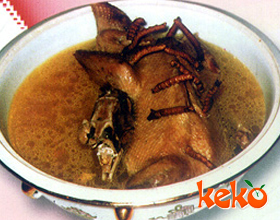 4.治疗贫血、阳痿时,可将母鸭洗净掏空内脏,放入冬虫夏草和佐料,再放在蒸笼中蒸熟后食用。