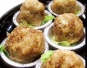 炸虾蓉豆腐丸子:'1.虾仁洗净剁成泥蓉状;肥肉剁成肉末;葱姜洗净均切成末。2.嫩豆腐制泥,加入虾蓉、肥肉末、鸡蛋、干淀粉搅拌, 再加入葱姜末、盐、味精、胡椒粉调和...