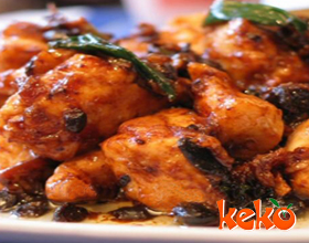 豆豉鸡:'1.将仔鸡(净仔鸡半只)剁成约2.5厘米见方的块洗净,用湿淀粉20克(淀粉10克加水)上浆。2.将勺内加油,烧热放入豆豉末、黄酱炒香,放入鸡块煸炒,再...    详细介绍