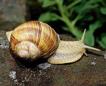 意大利庭院蜗牛:此种蜗牛外壳为黄褐色,有斑点。肉有褐色和白色两种,其肉质较好。因多生活在庭院和灌木从中,故称庭院蜗牛。