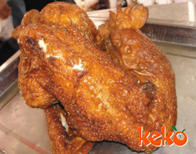 符离集烧鸡:'1.选用每只约重1000 克的活鸡10 只,宰杀放尽血水,热水烫、去毛、洗净;2.在靠肩的颈部直开一小口,取出嗉囊;3.再在肛门上边靠近腹部处横开一个5 厘...    详细介绍