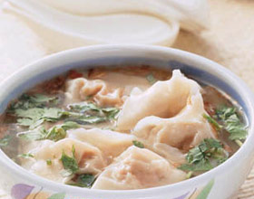 猪脾馄饨:'1.将胡椒、吴茱萸、高良姜烘干,研为末。2.猪脾洗净,切碎,炒熟。3.猪脾一半滚药末,另一半作馅包馄饨。...