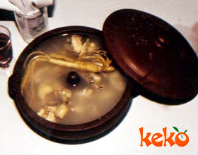 8.取出去掉姜、葱、蚬鸭的胸骨、锁喉骨,撇去汤面浮沫,加盖入蒸笼用中火再炖约1 小时便成。
