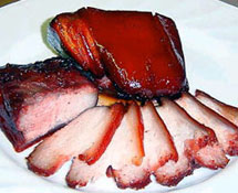 广东有种特色肉制品叫做叉烧,多呈红色,瘦肉做成,略甜。