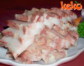 猪头肉皮厚而发粘,肉少而嫩,无筋膜、韧带,富胶质,肥而不腻,耳骨脆而可食。